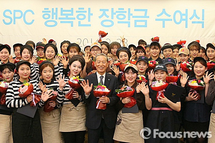 SPC그룹은 지난 23일 서울 신대방동 SPC미래창조원에서 '제9회 SPC행복한 장학금' 수여식을 진행했다.
