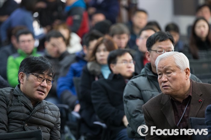 (서울=포커스뉴스) 24일 오전 서울 여의도 중소기업중앙회에서 열린 개성공단 기업 비상대책위원회 총회에서 입주기업 관계자들이 대화를 나누고 있다.