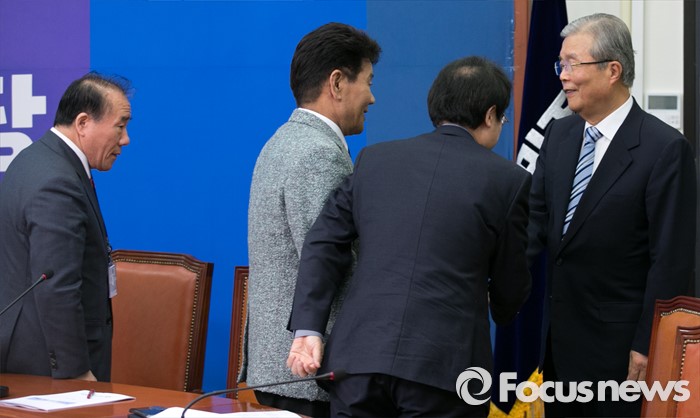 (서울=포커스뉴스) 김종인(오른쪽 첫번째) 더불어민주당 비대위 대표가 24일 오전 서울 여의도 국회를 방문한 장휘국(왼쪽부터) 전국시도교육감협의회장, 이청연 인천시교육감, 조희연 서울시교육감과 간담회에 앞서 인사하고 있다.