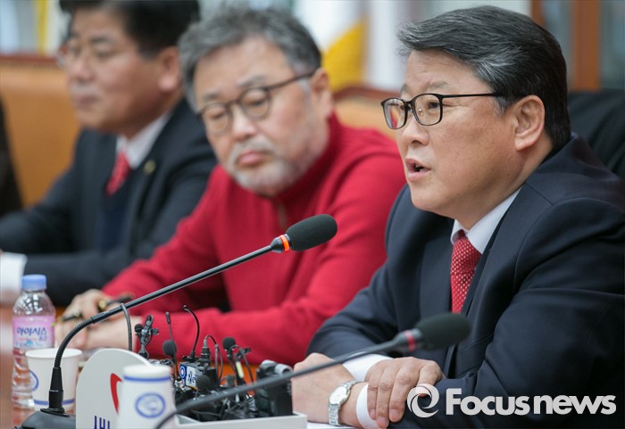(서울=포커스뉴스) 테러방지법 직권상정에 반발해 야당의 무제한 토론(필리버스터)이 진행되고 있는 24일 오후 서울 여의도 국회에서 열린 새누리당 원내대표단-정보위원회 연석회의에 참석한 조원진 원내수석부대표가 발언하고 있다.