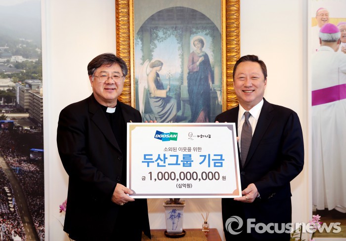 (서울=포커스뉴스) 두산그룹은 24일 재단법인 ‘바보의 나눔’에 성금 10억원을 전달했다고 밝혔다.