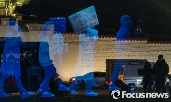 (서울=포커스뉴스) 24일 오후 서울 광화문광장에서 3차원 영상(홀로그램)을 이용해 열린 '2ㆍ24 앰네스티 유령집회'에서 '집회ㆍ시위 자유를 보장하라'는 주제의 영상이 스크린에 영사되고 있다.