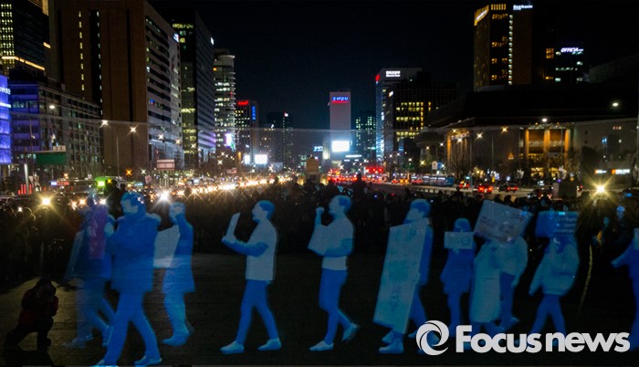 (서울=포커스뉴스) 24일 오후 서울 광화문광장에서 3차원 영상(홀로그램)을 이용해 열린 '2ㆍ24 앰네스티 유령집회'에서 '집회ㆍ시위 자유를 보장하라'는 주제의 영상이 스크린에 영사되고 있다.