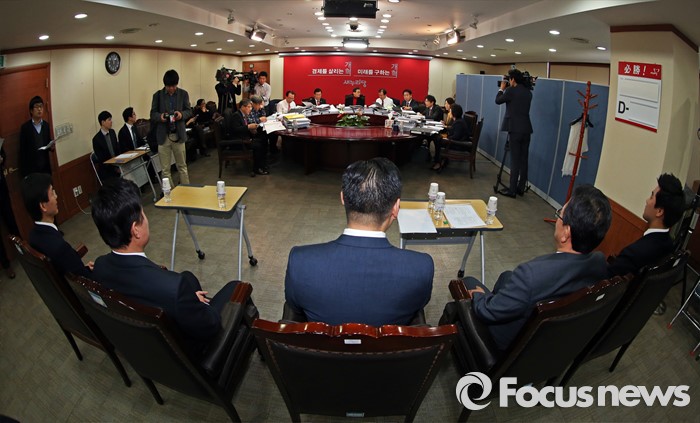 (서울=포커스뉴스) 25일 오전 서울 여의도 새누리당사에서 열린 20대 총선 공천 신청자 면접심사에 참석한 부산 사하을 예비후보들이 공관위원들의 질문에 답하고 있다.