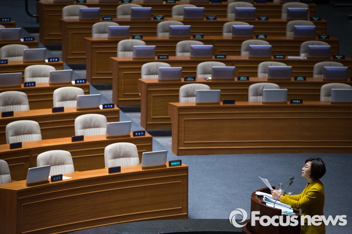 | △ 텅 빈 국회, 필리버스터 7번째 주자 정의당 김제남 의원 |