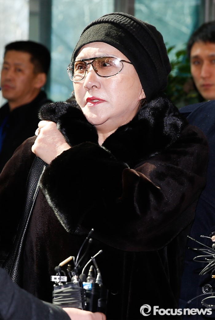 (인천=포커스뉴스) 사기 및 폭행 혐의로 고소장이 접수된 '무기 로비스트' 린다 김(본명 김귀옥) 씨가 25일 오후 인천 중구 중부경찰서에 출석하기 전 취재진의 질문에 답변하고 있다.