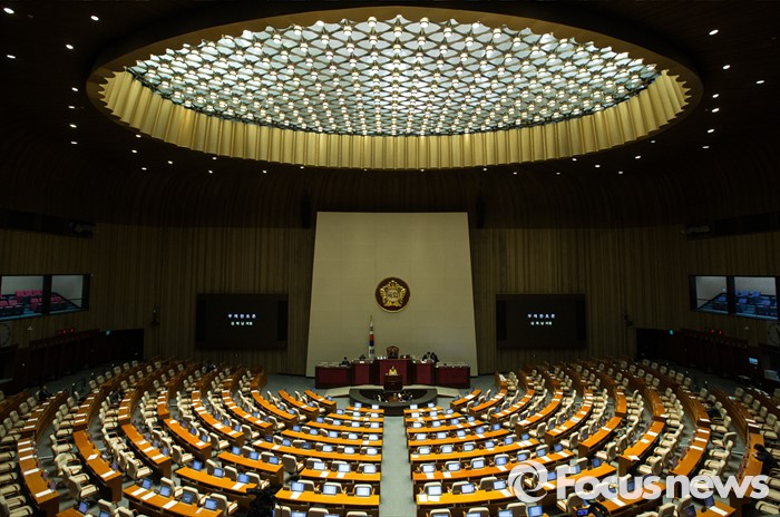 | △ 텅 빈 국회, 필리버스터 7번째 주자 정의당 김제남 의원 |