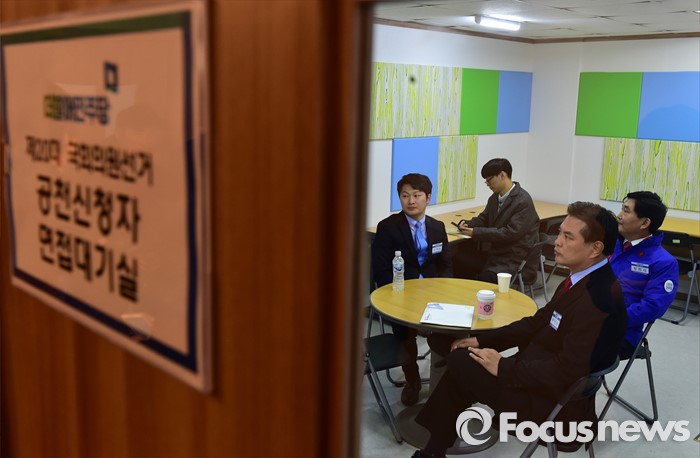 (서울=포커스뉴스) 25일 오전 서울 여의도 더불어민주당사에서 열린 20대 총선 공천 신청자 면접심사에 참석한 박영순, 고재일, 정현태 대전 대덕 예비후보가 심사를 기다리고 있다.
