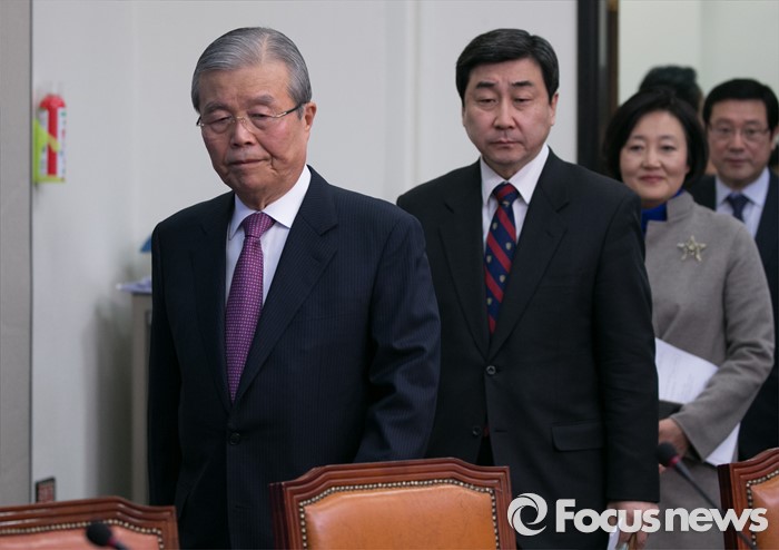 (서울=포커스뉴스) 김종인(왼쪽부터) 더불어민주당 비대위 대표, 이종걸 원내대표, 박영선 비대위원이 26일 오전 서울 여의도 국회에서 열린 비대위-선대위 연석회의에 참석하고 있다.