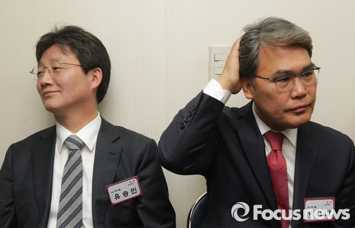 (서울=포커스뉴스) 26일 오전 서울 여의도 새누리당사에서 열린 20대 총선 공천 신청자 면접심사에 참석한 유승민(왼쪽), 이재만 대구 동구을 예비후보가 면접을 기다리고 있다.