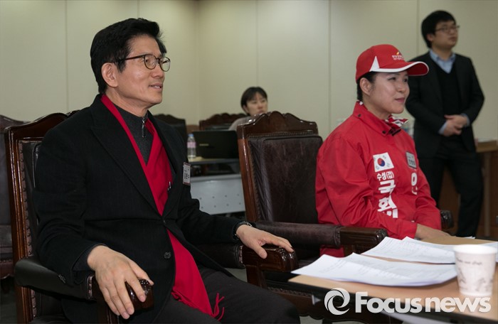 (서울=포커스뉴스) 26일 오후 서울 여의도 새누리당사에서 열린 20대 총선 공천 신청자 면접심사에 참석한 김문수(왼쪽), 안영희 대구 수성갑 예비후보가 공관위원들의 질문을 듣고 있다.