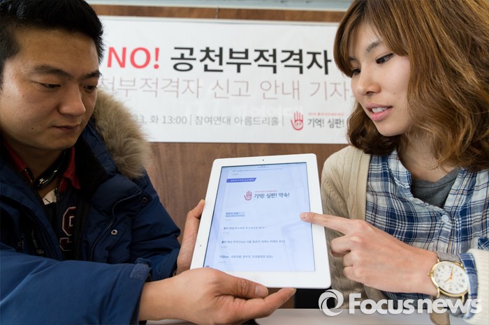 2016총선넷은 단체 활동의 일환으로 지난 23일부터 공천부적격자 신고를 받아오고 있다.(서울=포커스뉴스) 23일 오후 서울 종로구 참여연대 아름드리홀에서 2016 총선시민네트워크가 공천부적격자 신고 시연을 하고 있다. 2016.02.23 김인철 기자
