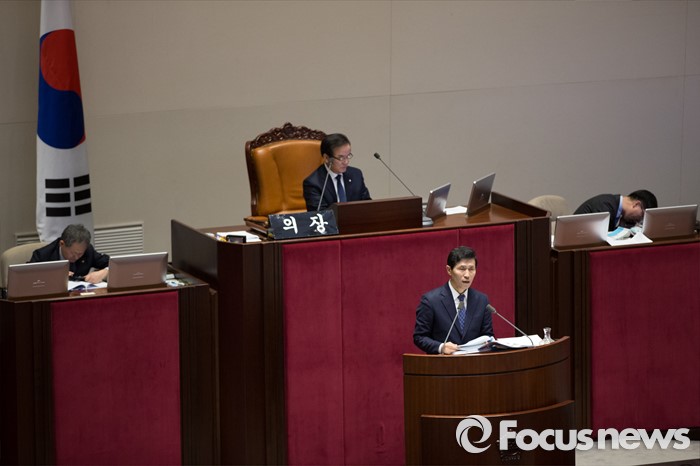 (서울=포커스뉴스) 테러방지법 직권상정에 반발해 야당의 무제한 토론(필리버스터)이 진행되고 있는 28일 오후 서울 여의도 국회 본회의 장에서 23번째 토론에 참여한 이학영 더불어민주당 의원이 발언하고 있다.