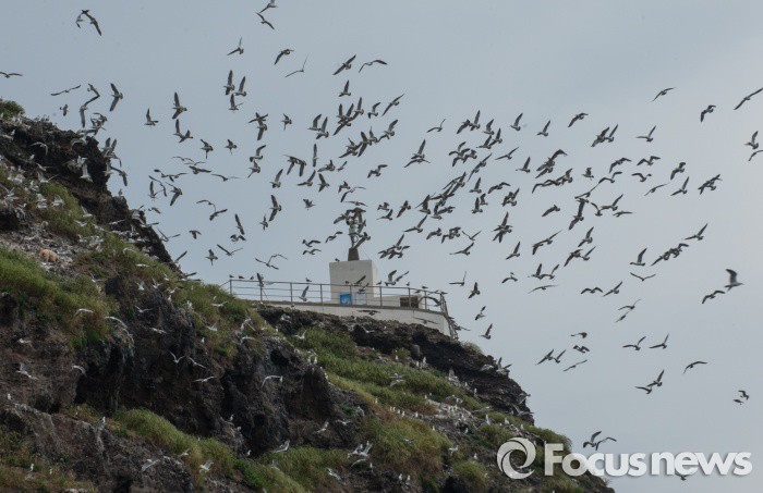 조준억 해양경비안전교육원 인재개발과장은 "해양경비안전교육원은 바다에서의 국민안전과 함께 독도와 같은 해양영토 수호에 있어서도 빈틈없도록 애국심과 사명감을 갖춘 우수한 인재를 양성하는데 더욱 노력하겠다"고 밝혔다.(독도=포커스뉴스) 독도 동도의 기상관측소 주변에서 군무를 펼치고 있는 괭이갈매기. 김연수 기자