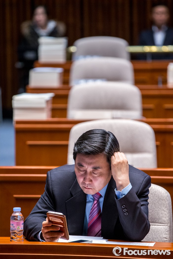 (서울=포커스뉴스) 이종걸 더불어민주당 원내대표가 29일 오후 서울 영등포구 국회에서 열린 의원총회에 자리해 총회 시작을 기다리고 있다.