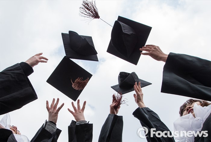 (서울=포커스뉴스) 29일 오후 서울 서대문구 이화여자대학교에서 열린 2015학년도 전기 학위수여식에 참석한 졸업생들이 학사모를 던지고 있다.