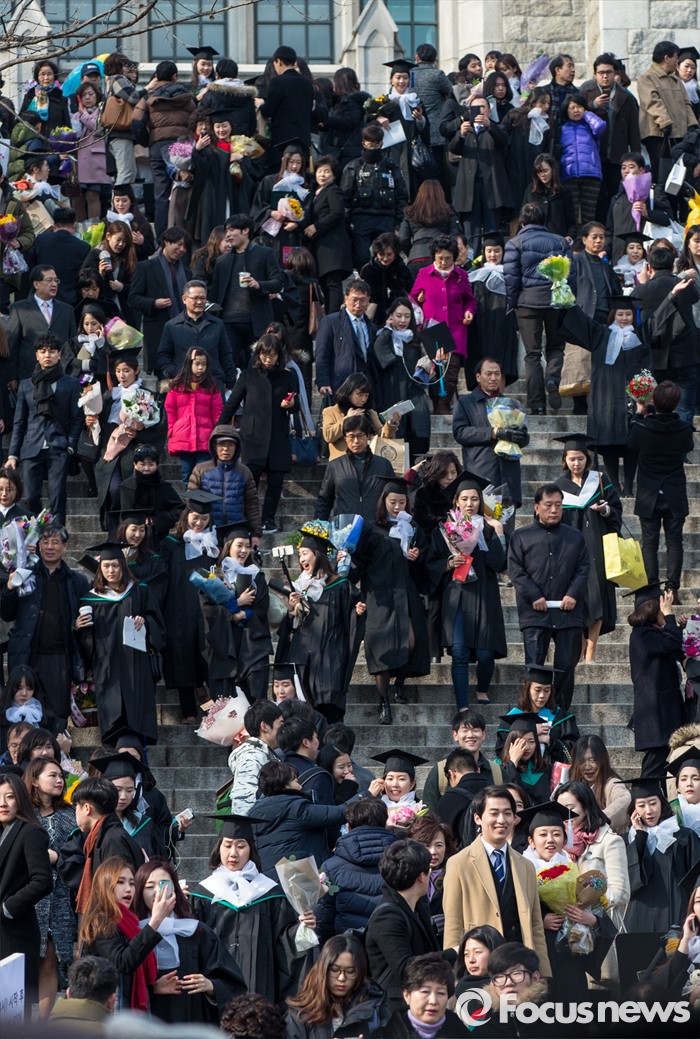 (서울=포커스뉴스) 29일 오후 서울 서대문구 이화여자대학교가 2015학년도 전기 학위수여식에 참석한 졸업생들 및 가족들로 붐비고 있다.