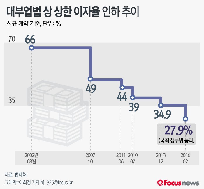 | △ [그래픽] 대부업법 상 상한 이자율 인하 추이 |