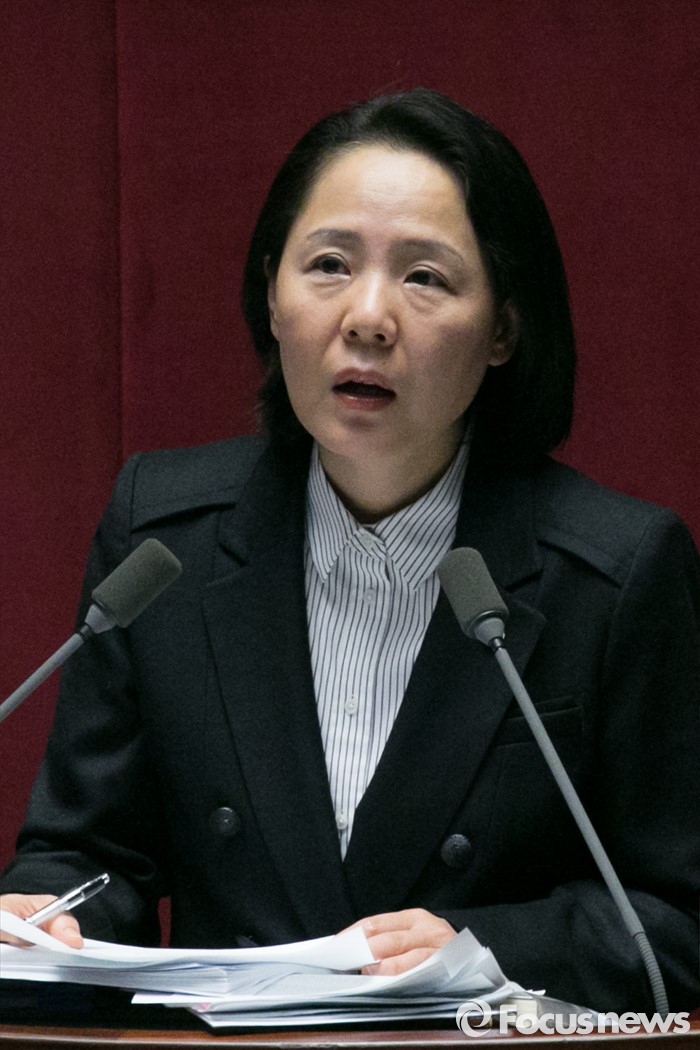 (서울=포커스뉴스) 임수경 더불어민주당 의원이 1일 오전 서울 여의도 국회 본회의장에서 테러방지법 저지를 위한 무제한 토론(필리버스터)을 하고 있다.