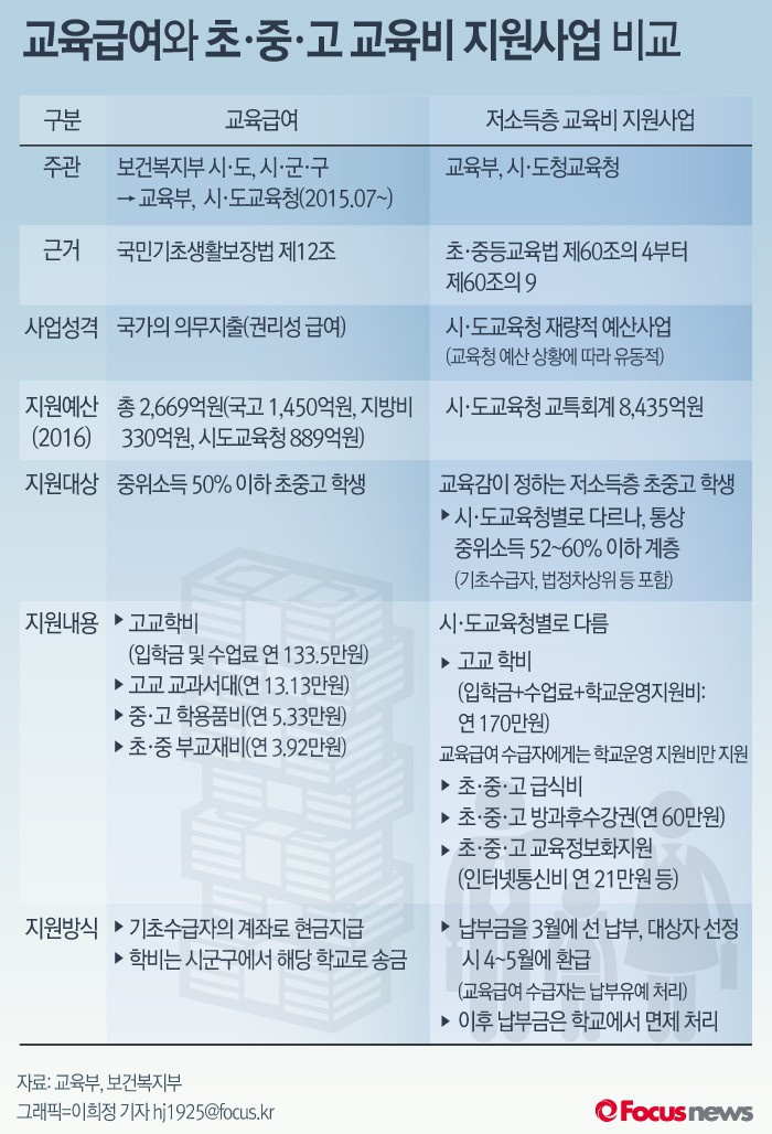 [그래픽] 교육급여와 초·중·고 교육비 지원 사업 비교