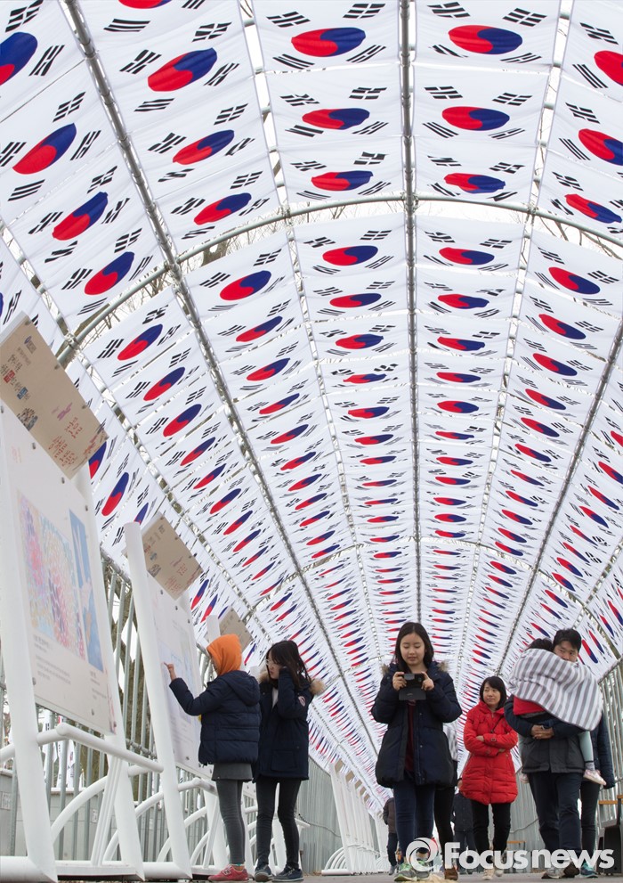 방통심의위는 "역사적 사건에 대한 토론이나 의견개진은 표현의 자유 내지 학문의 자유 영역으로써 폭넓게 보장되지만 도를 지나쳐 타당한 근거 없이 역사적 사실들을 왜곡하고 순국선열, 위안부 피해자 등에 대한 폄하·조롱·혐오하는 정보들은 표현의 자유라는 이유로 정당화될 수 없다"고 지적했다.(천안=포커스뉴스) 3·1절을 이틀 앞둔 지난달 28일 오후 충남 천안 독립기념관을 찾은 시민들이 광장에 마련된 태극기 터널을 지나고 있다. 김기태 기자