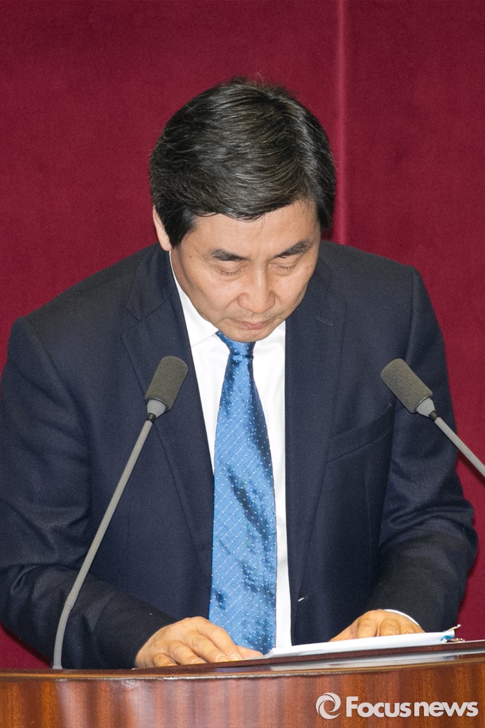 (서울=포커스뉴스) 이종걸 더불어민주당 원내대표가 2일 오전 서울 여의도 국회 본회의장에서 테러방지법 저지를 위한 무제한 토론(필리버스터) 중, 국민께 사과인사를 하고 있다.