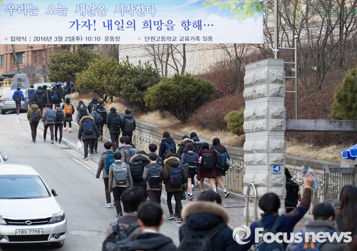 (안산=포커스뉴스) 2일 오전 신입생 입학식이 열리는 경기도 안산 단원고등학교에 학생들이 등교하고 있다.