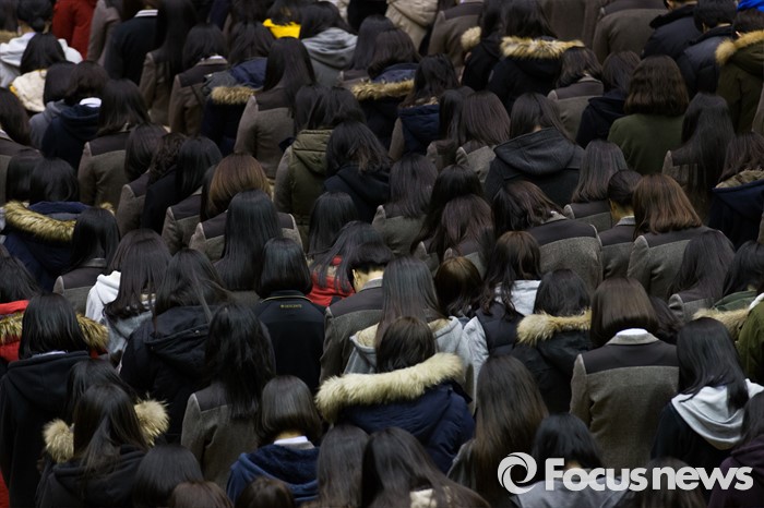 (안산=포커스뉴스) 2일 오전 경기도 안산시 단원구 올림픽기념관에서 열린 단원고등학교 입학식에 참석한 신입생들이 묵념하고 있다.