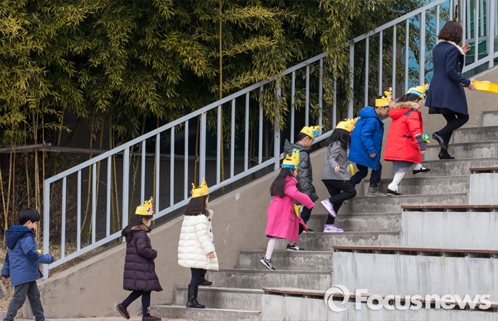 (서울=포커스뉴스) 2일 오전 서울 이태원 초등학교에서 열린 2016학년도 입학식에 참석한 어린이들이 담임 선생님을 따라 교실로 향하고 있다.