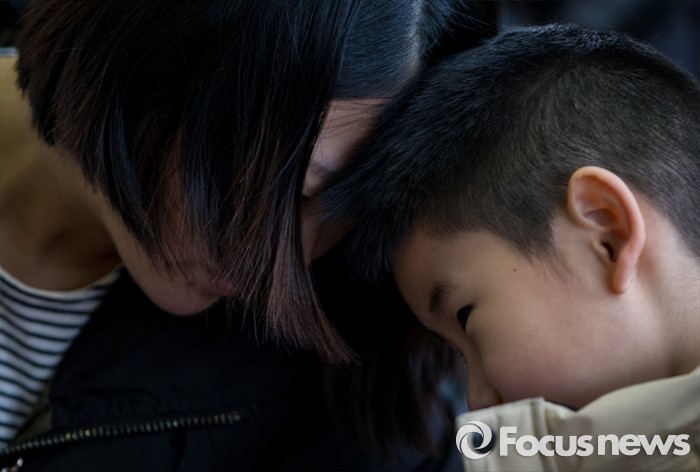 (서울=포커스뉴스) 2일 오전 서울 이태원 초등학교에서 열린 2016학년도 입학식에 참석한 신입생이 엄마와 이마를 맞대고 있다.