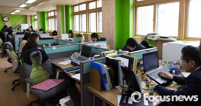 (안산=포커스뉴스) 안산 단원고등학교 교육정상화를 위해 유가족, 재학생 학부모들 간의 교실 존치 논의가 계속되고 있는 2일 오후 경기도 안산시 단원고등학교 도서관에 마련된 교무실에서 교사들이 업무를 보고 있다.