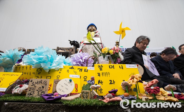 (서울=포커스뉴스) 기독교 시민단체들이 일본군 위안부 문제해결을 위한 정기 수요집회에 참석해 지난해 12월 28일 이뤄졌던 한일합의를 즉각 철회할 것을 촉구했다.