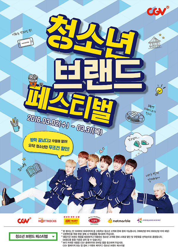 (서울=포커스뉴스) CJ CGV가 새학기를 맞아 영화와 도서, 잡화, 게임, 놀이공원 등 청소년들이 좋아하는 다양한 브랜드의 할인 혜택을 모은 '청소년 브랜드 페스티벌'을 개최한다.