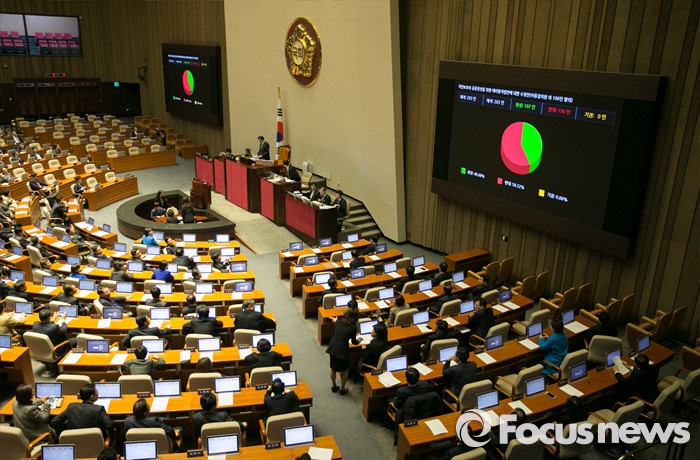 (서울=포커스뉴스) 2일 오후 서울 여의도 국회에서 열린 340회 국회(임시회) 7차 본회의에서 국민보호와 공공안전을 위한 테러방지법안에 대한 수정안(이종걸 의원 외 106인 발의)가 재석 263인, 찬성 107인, 반대 156인으로 부결되고 있다.