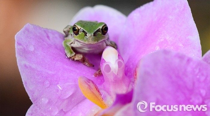 (청주=포커스뉴스) 경칩을 앞둔 3일 오전 충북 청주시 오창읍 충북농업기술원 화훼온실에서 청개구리가 겨울잠에서 깨어나 모습을 보이고 있다.
