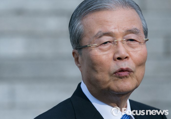 (서울=포커스뉴스) 김종인 더불어민주당 비대위 대표가 3일 오전 서울 여의도 국회 앞에서 열린 달리는 정책의자 발대식에 참석한 뒤 야권 통합 제안과 관련 취재진 질문에 답하고 있다.