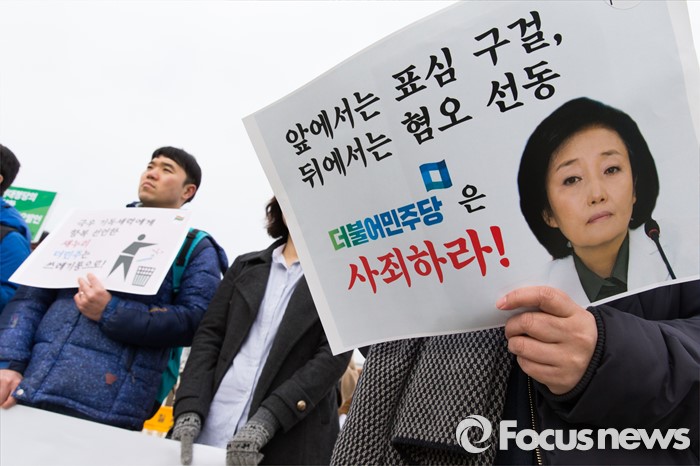 (서울=포커스뉴스) 3일 오전 서울 여의도 국회 앞에서 성소수자차별반대 무지개행동을 비롯한 인권시민사회단체가 성소수자 혐오, 차별에 동조하는 새누리당 김무성 대표와 더불어민주당 박영선 비대위원을 규탄하는 기자회견을 하고 있다.