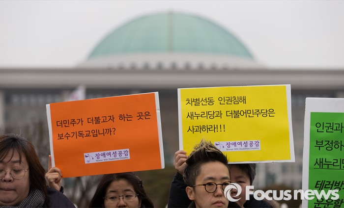 | △ '차별선동 인권침해 새누리-더민주 사과하라!' |
