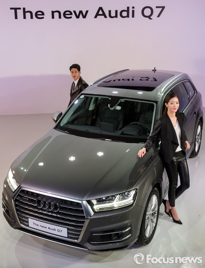 (서울=포커스뉴스) 3일 오전 서울 중구 반얀트리 클럽 앤 스파에서 모델들이 대형 SUV '더 뉴 아우디 Q7'을 선보이고 있다.