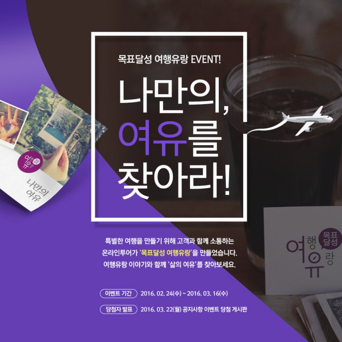 당신의 여행 이야기를 들려주세요…'목표달성 여행유랑 이벤트'