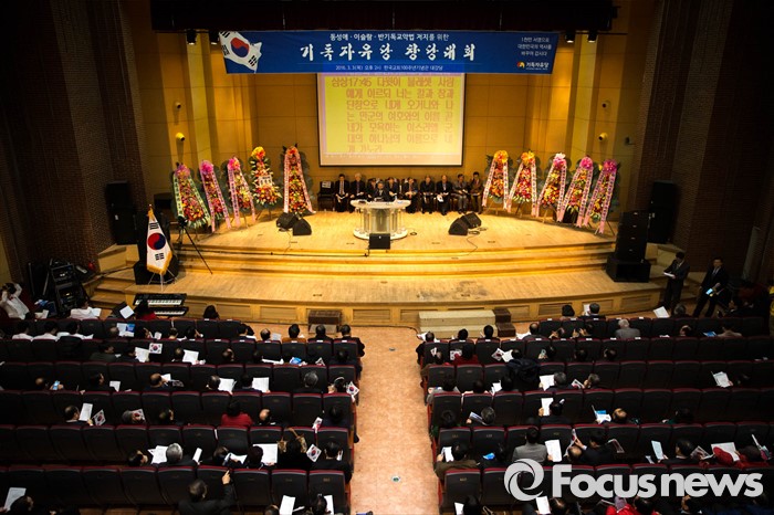 (서울=포커스뉴스) 3일 오후 서울 종로 한국기독교100주년 기념관에서 기독자유당 창당대회가 열리고 있다.