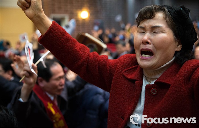 (서울=포커스뉴스) 3일 오후 서울 종로 한국기독교100주년 기념관에서 열린 기독자유당 창당대회에서 참가자들이 기도를 하고 있다.