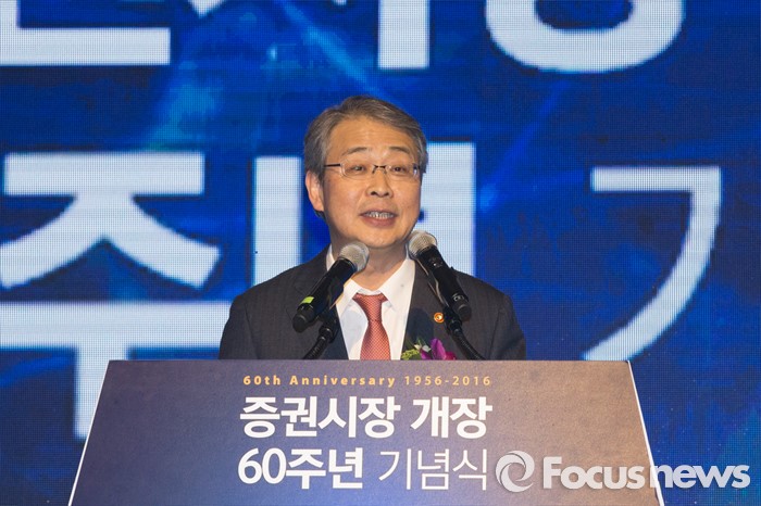 (서울=포커스뉴스) 임종룡 금융위원장이 3일 오후 서울 영등포구 63빌딩에서 열린 증권시장 개장 60주년 기념식에서 축사를 하고 있다. 이번 행사는 지난 1956년 3월 3일 대한증권거래소의 출범과 함께 문을 연 한국 증시의 60년 발자취를 기념하기 위해 마련됐다.