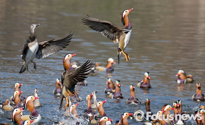 (서울=포커스뉴스) 동면하던 동물이 땅속에서 깨어난다는 경칩을 하루 앞둔 4일 오전 서울 종로구 창경궁 춘당지에서 원앙들이 봄의 기운을 알리듯 힘차게 날갯짓을 하고 있다.