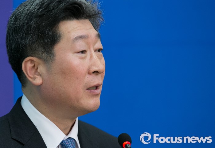 (서울=포커스뉴스) 윤종기 전 인천경찰청장이 4일 오후 서울 여의도 국회에서 열린 더불어민주당 인재영입 기자회견에 참석해 인사말을 하고 있다.