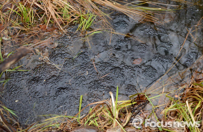 (영암=포커스뉴스) 전국적으로 봄비가 내리고 절기상경칩인 5일 전남 영암군 영암읍 월출산 자락에 겨울잠에서 깨어난 산개구리들이 산란한 알이 물웅덩이를 뒤덥고 있다. <사진제공=김현태 양서류연구가>