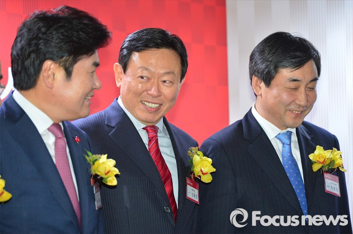 신 전 부회장은 6월 개최되는 롯데홀딩스 정기 주주총회에서 이번과 같은 안건을 재상정하기 위해 주주 제안권을 행사할 계획이다.(서울=포커스뉴스) 22일 서울 송파구 롯데월드타워에서 열린 '대한민국 랜드마크 롯데월드타워 상량식'에서 원유철(왼쪽) 새누리당 원내대표, 신동빈 롯데그룹 회장, 이종걸 새정치민주연합 원내대표가 이야기를 나누고 있다.