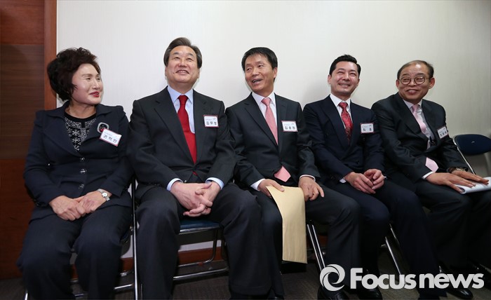△ 예비후보자들과 나란히 앉은 김무성 대표