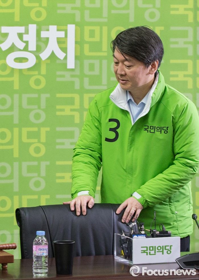 (서울=포커스뉴스) 7일 오전 서울 마포구 당사에서 열린 선거대책위원회의에 참석한 안철수 국민의당 상임공동대표가 착석하고 있다.