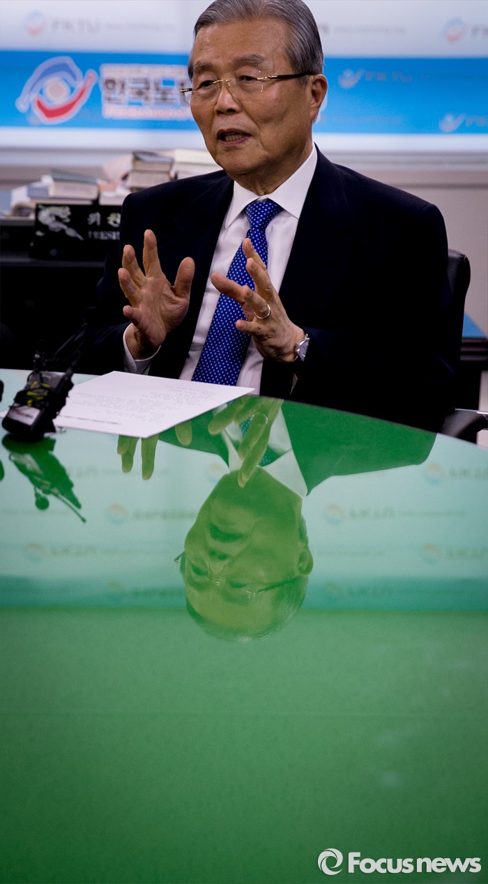 (서울=포커스뉴스) 김종인 더불어민주당 비대위 대표가 7일 오후 서울 영등포구 한국노동조합총연맹을 방문해 김동만 위원장과 대화하고 있다.